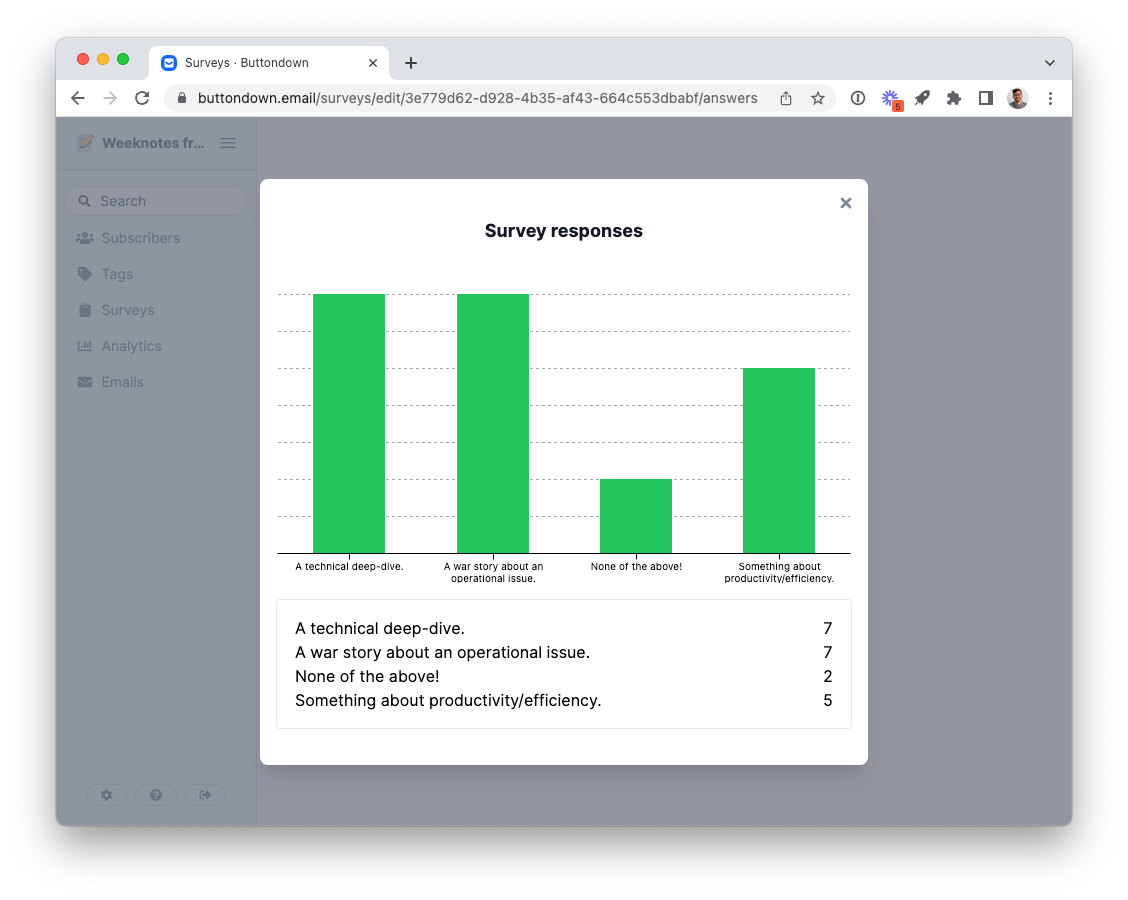 There are a lot of "big picture" solutions to this problem — I recommend highly my friends at Tally and Reform — but those are heavier solutions for when you have lots of questions and conditional logic and other bells and whistles. What if you just want simple questions in your email?